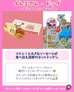 みさきです こんばんわに ユニバ冬のフード特集 第2弾 プレミアム・ドッグ クリームミートソースだって 美味しそう過ぎませんか ホットドッグ好きだから 絶対食べたいんだけど こーゆーボリュームのあるやつ 毎回どうやって食べていいか わかんないんだよね 絶対汚れるじゃん だからさ食べ方困るのよ しかも外で食べるとなると 余計に困るよね 絶対手汚れるし 口周り絶対汚れるじゃん 美味しそうなのに大変すぎる でも映えの為なら食べたいね スヌーピーかわいいなん ユニバとかディズニー行くと 真っ先にホットドッグに目が行く ではでは!また みさき