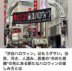 みさきです こんちゃ 気になるニュースコーナー 今回の気になるニュースは えぇぇぇ渋ハロの時代は 終わったんですか びっくりだよ でも確かに昨日 名古屋のオアシスにも そんなに人が集まってなかった 気のせいなのか 雨のせいなのか まぁでもめっちゃ迷惑だから こんなハロウィンワイワイの 時代は終わってもいいのか まぁ正直なにが楽しいのって 感じですけどね 仮装して集まって写真撮る 正直どこでも出来ますからね だからいまは身内で仮装して パーティーするのが 流行ってるみたいですよ 新しい時代はそれらしい でも1番平和じゃないですか 誰にも迷惑かけないし 身内だけで楽しいし 渋ハロでごちゃごちゃもしないし 仮装できて写真も取れる もう今の時代それでいいよね ではでは!また みさき