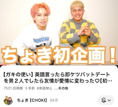 みさきです やっほほ お母さんたちは飛行機を 見に静岡へ旅立った いいなぁぁぁ わたしも行きたかった 夜お仕事なのでお留守番 静岡行って飛行機見て お昼はお母さんの作った サンドイッチ食べて たくさん歩いて 夜はさわやかでハンバーグ食べて え、最高の休日やんって なるつもりだったんだけど お仕事なので我慢です まぁでも夜おでん食べに行くから いいや てことでYouTube紹介 YouTube沢山紹介したいの ありすぎている 今日紹介するのは 英語禁止デート ちょきさん初の企画 いやぁぁちゃんとおもろいんよな まず決まってない挨拶から スタート 初々しくて好き そしてグダグダで始まる感じも 好きなんです いやぁぁ英語禁止って 結構ムズいよ 私たちもたまにやるけど ほんとに難しい 外で彼らケツバットやってます 英語言ったらケツバット ありきたりだけどおもろいの 一応男同士でのデートをテーマに 英語禁止 ういういしい彼らをご覧下さい ではでは!また みさき