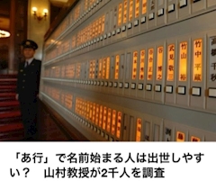 みさきです こんちゃ 気になるニュースコーナー 今回の気になるニュースは あ行の苗字の人は 出世するらしいよ えぇぇぇあ行になりたい でも確かにそうかも 私の周りの人で出世してるの あ行の人多い気がする すごいよねこうゆう統計出すの 色んな人に聞いてデータ集めて ニュースになって すごいなって思う けどさあ行だとさ学校とか あいうえお順とかの時 早めに何かしなきゃ いけなかったりするじゃん 誰よりも先だったりするじゃん それがわたしはちょっとやだった わぁ可哀想って思ってたけど 今は誰よりも先に できるじゃんって羨ましい でもまぁ産まれた時から人は 苗字ついてますからね こればっかりは運ですね ではでは!また みさき