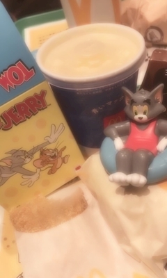 こんばんみむぎです🐰 じゅりさんと朝マックに 行きました🍔 久々な気がする トムジェリとコラボしてたから 5億年ぶりのハッピーセット^-^ 狙ってた本命は出んかったけど このトムも可愛くて欲しかったから 地味に嬉しい😗置き場には困ります むぎでしたまたねんっ ̫ ᴗ^