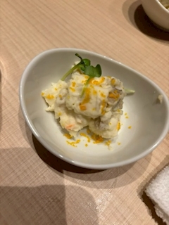 みさきです やほやほ また遅れた 最悪ですわ 寒すぎて手が動きません かじかんでて 頑張って文字打ってます 21時までに書き終わらねば あと2個書きたいのだよ てことで飯テロブログ 今日のお店は 喰海さん 1品目 お通し とびっ子入のポテトサラダ 食感楽しめて好き ポテトサラダお通しだと テンション上がる 冷たいのがいいんよねわたしは 2品目 カンパチ 多分カンパチ この辺の魚全然分からへん 似すぎてる ぶりではないよね ムズすぎるけど分厚くて 美味しいのだけは美味しい 3品目 オシャレバケット パンサクサクで美味しいすぎる 生ハムとチーズがたまらん こりゃワインとかに合うよな 食べたら止まらんよ 何個でもいけちゃう 4品目 カニ味噌 やばいでしょこのカニ味噌 臭くないし最高 欲をいうともっと熱々の カニ味噌がいい カニも入ってて最高なの コースたまらんです まだまだ食べたから明日紹介する コースってもの足りる時と 足りない時があるよね ではでは!また みさき