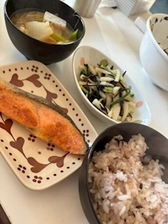 みさきです おはようございます もう週の真ん中って やばいですよね 早いわほんとに 今年も残り3ヶ月ってヤバすぎ こんな早いことある この前ハッピーニューイヤーして 誕生日来て もう今年終わるって 何事ですか案件 頭抱えちゃいますわ もう26歳なのに色々考えなきゃ てことで料理日記です 最近またちょこちょこ 作り始めてて どんどん更新したいのに まだまだ昔のが沢山 紹介させて下さい 今回の献立は こちらです 焼き鮭献立 これは軽い朝ごはんだったかな いい朝すぎるよね 1品目 焼き鮭 バターは使わずに シンプルイズベスト 塩コショウだけです あえてご飯が進むように いい焼き具合でした 朝にはちょうどいいね 2品目 大根ときゅうりとひじき和え 酢ベースの味です サッパリしてていい味 ヘルシーだしオススメ ひじきも入ってるから 鉄分も取れて最高ですよ 3品目 豚汁 残り物で作った豚汁 残ったものぶち込んだだけ それでもしっかりと お腹いっぱいになりますからね しっかりお肉も入れて 最高朝ごはんでした ではでは!また みさき