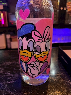 こんばんは🌆 この前久しぶりにお母さんと一緒に 地元に飲みに行ったんだけど スナックのママさんが ディズニーでなにが好き?って聞いてもらって 昔好きだったし ペアじゃないけどコップが置いてあったの思い出して ドナルドとデイジー書いてもらったの! 普通に絵が上手だし、 パッて検索して見ながら書いてたんだけど 普通にボトルにかけるの難しいと思ったのに さらっと書いてくれて しっかり写真に収めて帰ったよねww それでね、絵心ない私からしたら 凄すぎて、練習しようかなって思ったww まぁ、どーせしないと思うけど 帰ったら書いてみようかなww じゅり👋
