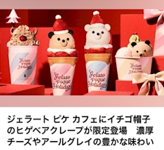 みさきです こんちゃ 気になるニュースコーナー 今回の気になるニュースは え、まずジェラピケって カフェあったんだからなんだけど 知らなかったよ どこにあるんだろう 東京かな 気になりますよね ほんでもって可愛いな なにこの映えクレープ 映えの為だけに頼みたい クリスマスって感じだね 食べるの大変そう てか可愛すぎて食べれんよ 写真だけ撮って 半分食べたくらいに 要らなくなる未来見えてる 甘いのそんな得意じゃなくて 映えの為なら何でもするけど 女の子はそうゆう生き物なんです 映えに命かけてんの すごいでしょ 機会あったら食べてみたいな ではでは!また みさき