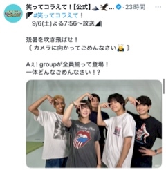 こんばんはあかねです 日曜日の楽しみはイッテQを観ることです なんですけど!! 昨日放送の笑ってコラえてに推しのAぇ! groupが! リアルタイムでは観れやんかったから これからTVerで見ようかなと思っている👀 メンバー全員でバラエティに出演してるのが ファンからしたら大歓喜 個人でのお仕事も増えてきてる中で こうして5人集まって地上波に出てること とっても鼻が高いです(誰やねん) しかもこのバラエティなんて 老若男女みるくない?????? 高い年齢層にもぜひささっていただきたい Aぇ! groupを‼️ 冠番組も始まるみたいやし 大活躍やないか、君たち ファン嬉しい、でも無理せずにです んじゃまたっ あかね