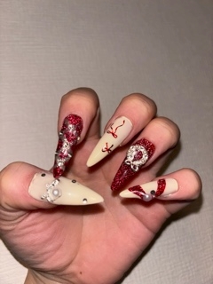 こんばんはあかねです 早起きしたので 久しぶりにネイルしたの𐔌՞⁔•͈ ·̫ •͈⁔՞𐦯⋆꙳ きらきら~ クリスマスネイルにしましたあ🎄 リーフとリボンいっぱいʚ🎀ɞ 右手はクリスマスツリーも作っちゃった やっぱりネイルするとテンション上がりますね あと久しぶりにこの形で 猫になれそう、シャア 久しいコテコテネイル、上がります それじゃまたっ あかね