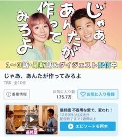 おはよおございますあかねです 昨日最終回やったドラマをみて寝ると決めた今日 はあ、。最終回ってなんでこんなにも寂しいんだ 火曜の楽しみにしてた最終回 「じゃあ、あんたが作ってみろよ」 まさかの最終回すぎて びっくりしたけど、、、 あゆめろとかつおが幸せな顔で最終回を 迎えられてていいラストだなと(*^^*) めちゃめちゃ面白いドラマやったなあああ 男女の価値観ってこんなにも違うのかって 思ったドラマかもっ ̫ ‹ ᐝ 相手に自分の価値観を押し付けることなく 共有するという形で上手く生きていけたら 人間関係も上手くいくけど そう簡単には行かんよなあと思ったり(*^^*) 今期1番好きなドラマやったかも んじゃまた!おやすみー あかね